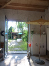 Unser idyllischer Garten kann nicht nur im Sommer genutzt werden. Mit der grossen Feuerstelle ist er auch romantisch an einem kalten Winterabend.